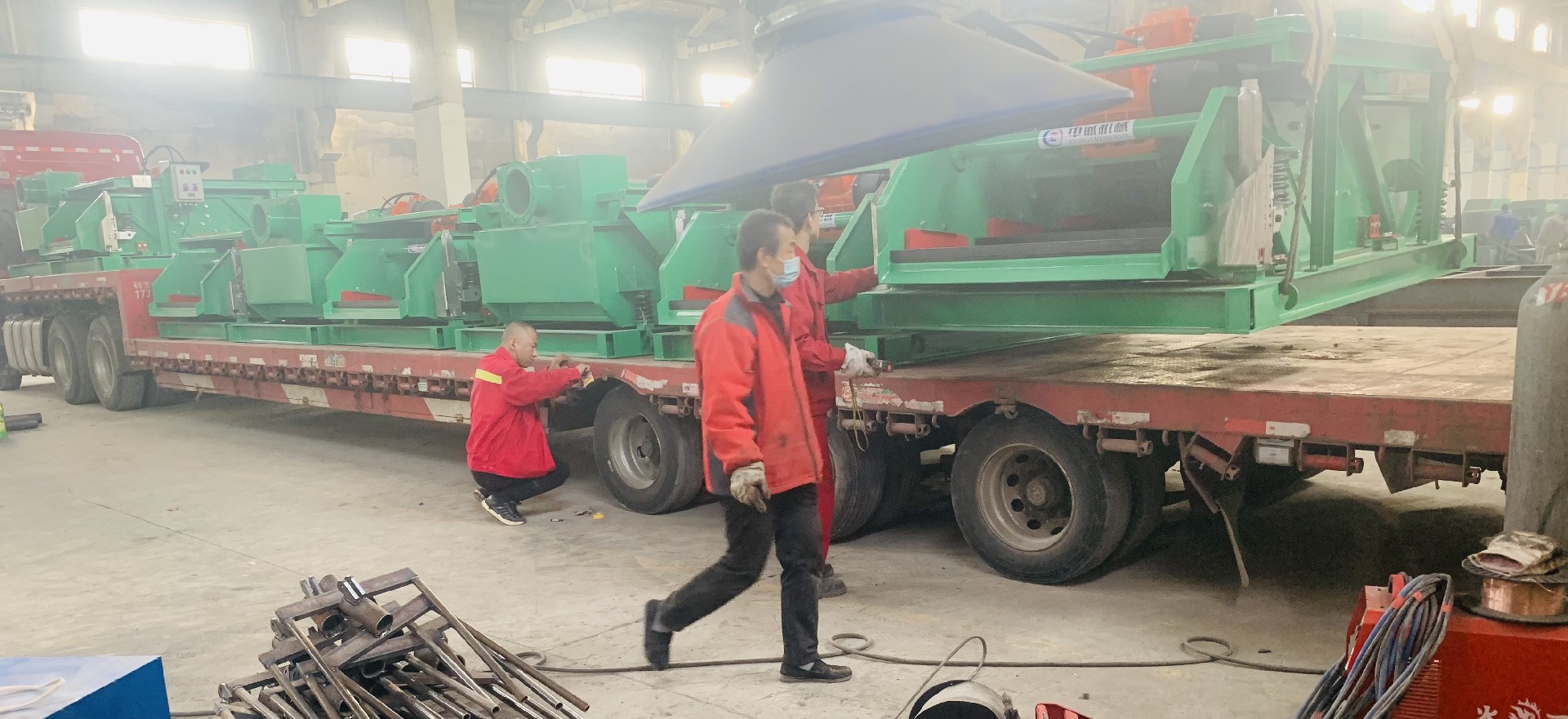 中誠為國內(nèi)某大型鉆探公司生產(chǎn)的首批十臺鉆井液高頻振動篩交付客戶